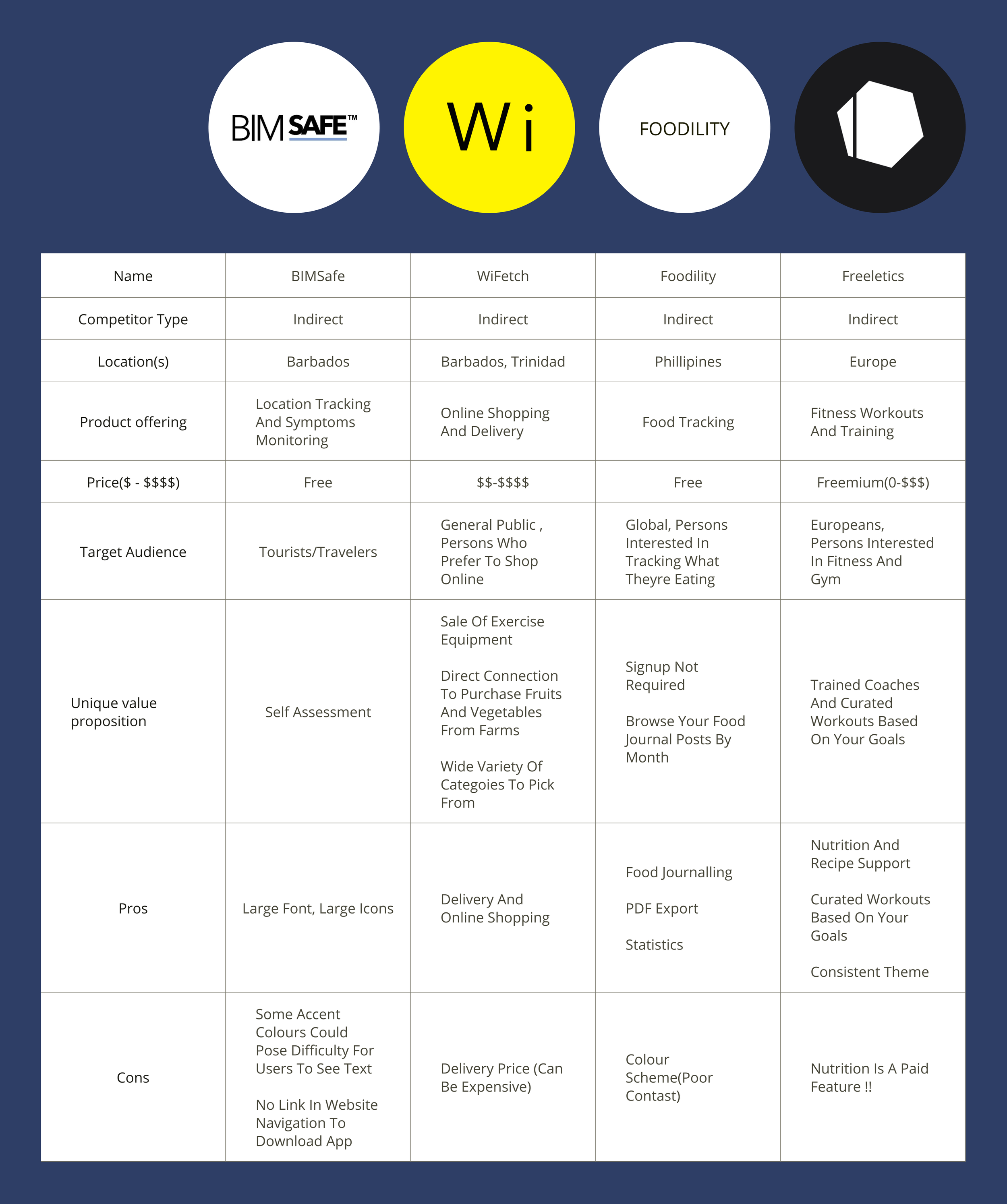 When looking at the competition, I realized they are no direct competitors for an app for health focused on the Barbadian public/market.